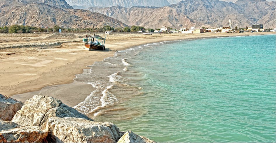 - Then drive through the Hajar Mountains until Dibba, a picturesque port town, and stroll along the waterfront past fisherman gathering their catches. Then, follow the beautiful coastal roads to either a public beach or the Sandy Beach Hotel and Resort —just select your preference on the day. If you opt for the Sandy Beach hotel, pay the entrance fee and enjoy the sands, sea, and swimming pool, together with a delicious included lunch buffet.