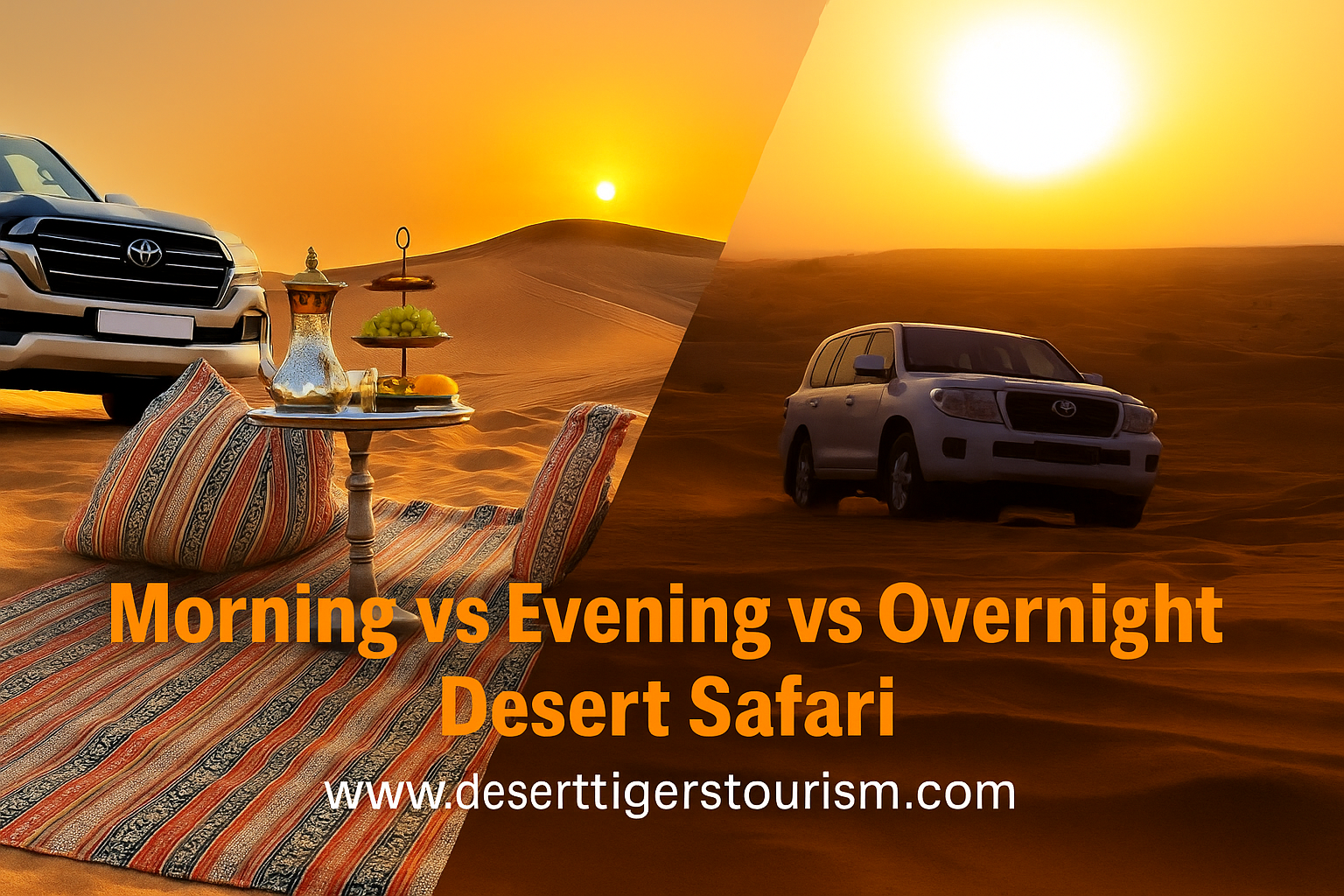 Welcome to Desert Tigers Tourism, where Dubai’s desert safari tour is more than just an experience; it reflects the essence of Arabian adventure. Many travelers often wonder about the right timing—whether a Morning, Evening, or Overnight Desert Safari suits their style, schedule, and budget. Each option brings its own flavor: the calmness of early mornings with a cool desert breeze, the golden views of sunset that feel like magic, or the stillness of the night filled with stargazing under countless stars.